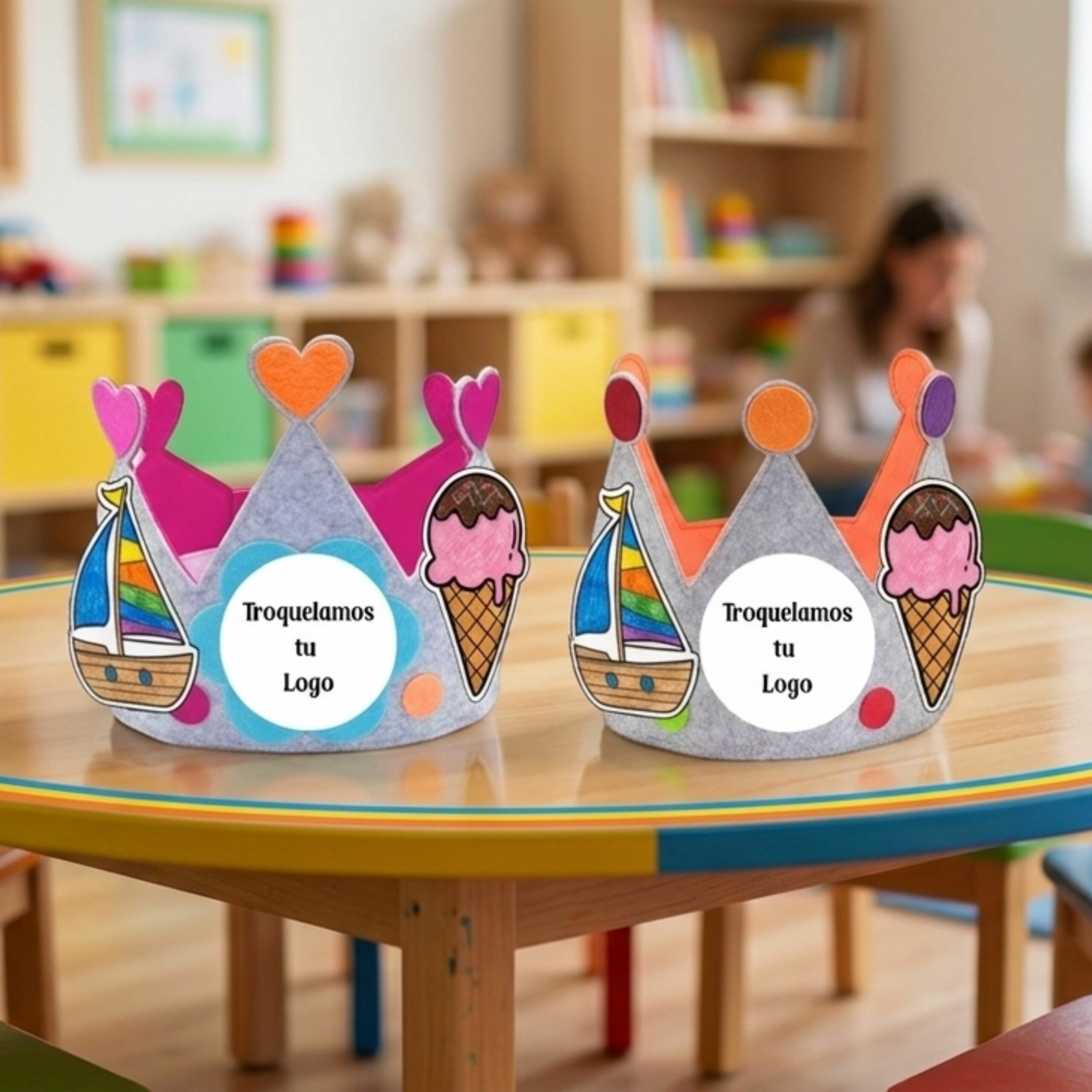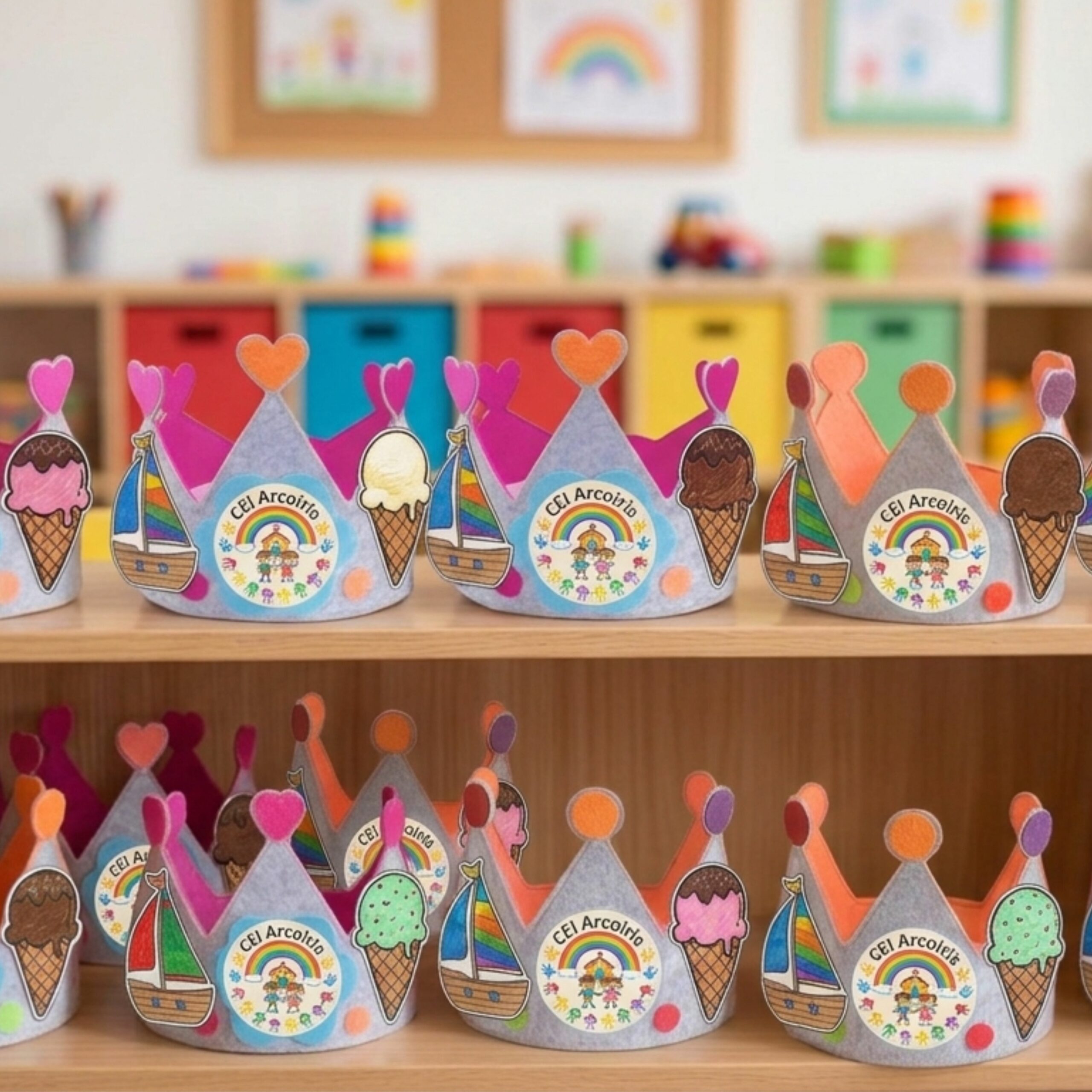 Nuestras coronas de fieltro están diseñadas para ser el accesorio perfecto en fiestas de fin de curso, cumpleaños o celebraciones especiales en colegios, escuelas infantiles y academias.