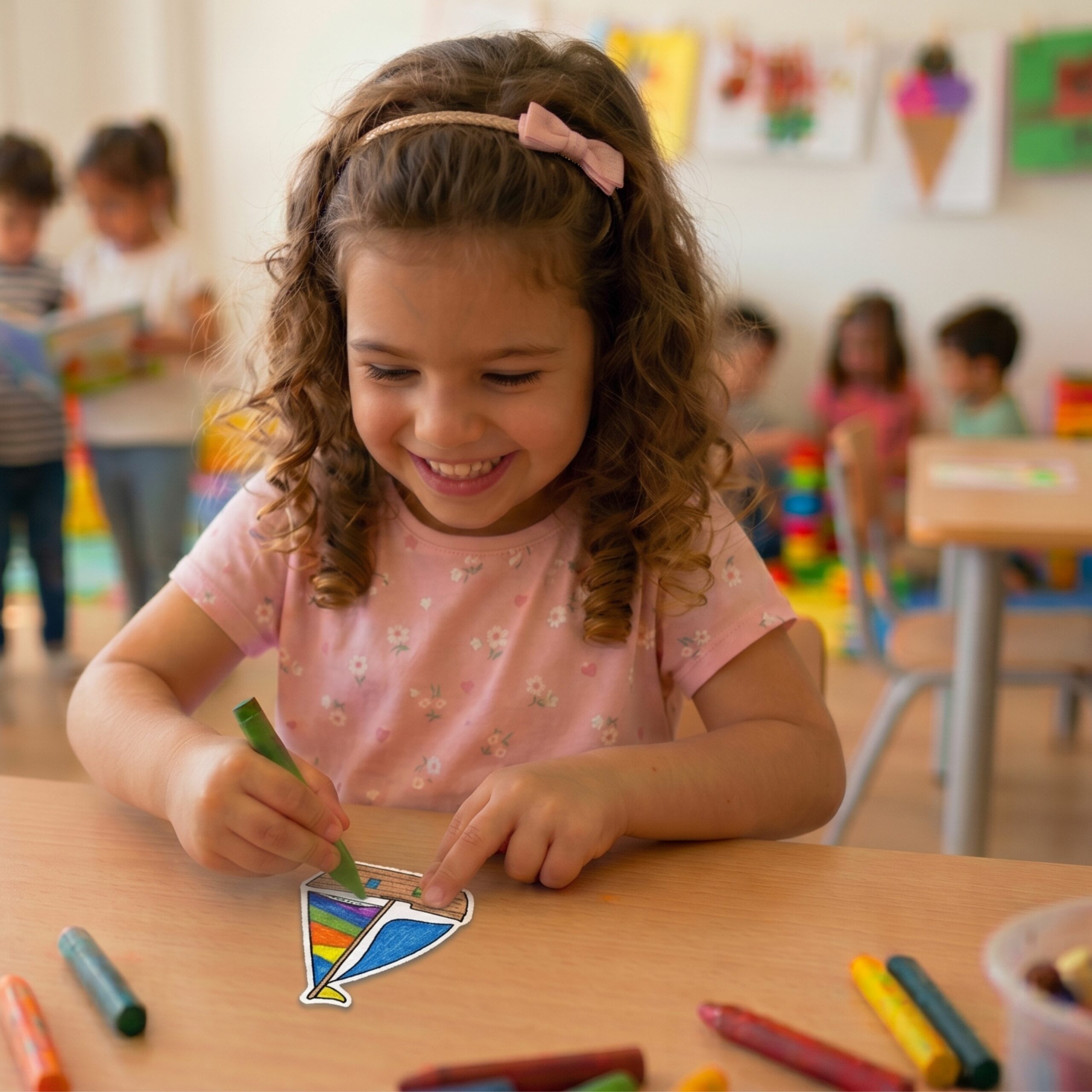 • Actividad Manual Incluida: Cada pack incluye dos ilustraciones en cartulina de alta calidad (un barquito velero y un cucurucho de helado). Los niños podrán dar rienda suelta a su imaginación pintándolas con ceras o rotuladores antes de lucirlas en su corona.